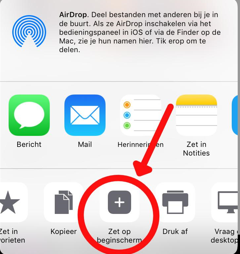 Je komt dan in een menu terecht met tal van keuzes. Ieder 'merk' telefoon doet dat op zijn eigen manier. Maar er zal altijd wel ergens iets staan van 'Zet op beginscherm', 'Add to Home screen'